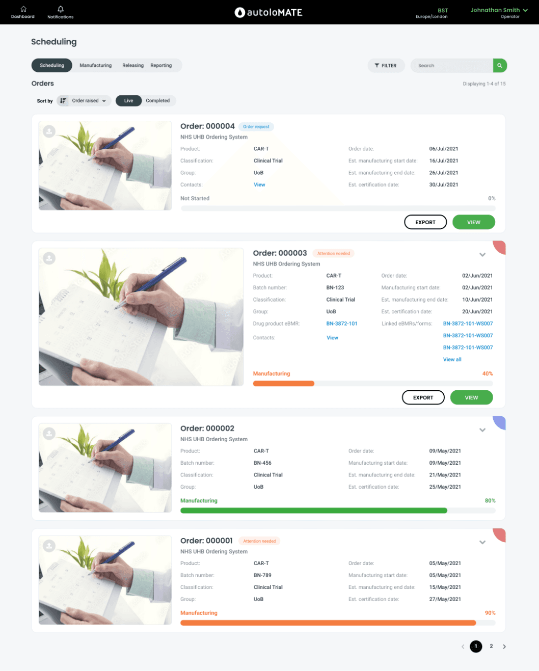 Autolomous is a biotech platform digitising the production of personalised medicine. I joined as the first UX/UI designer to transform an early MVP into a scalable, user-first product suite. Collaborating with stakeholders and scientists, I helped secure NHS funding and expand the platform globally.