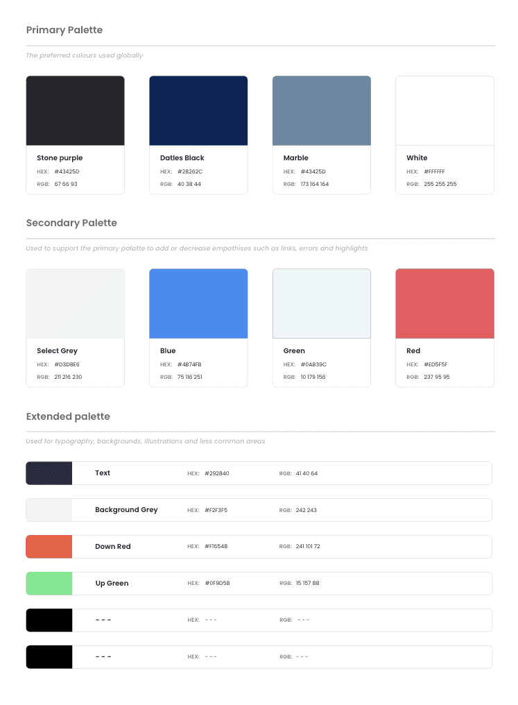 As this was a start up aiming to have many products, creating consistency early on was vital so a design system was built. This also scoped the brand guidelines.
