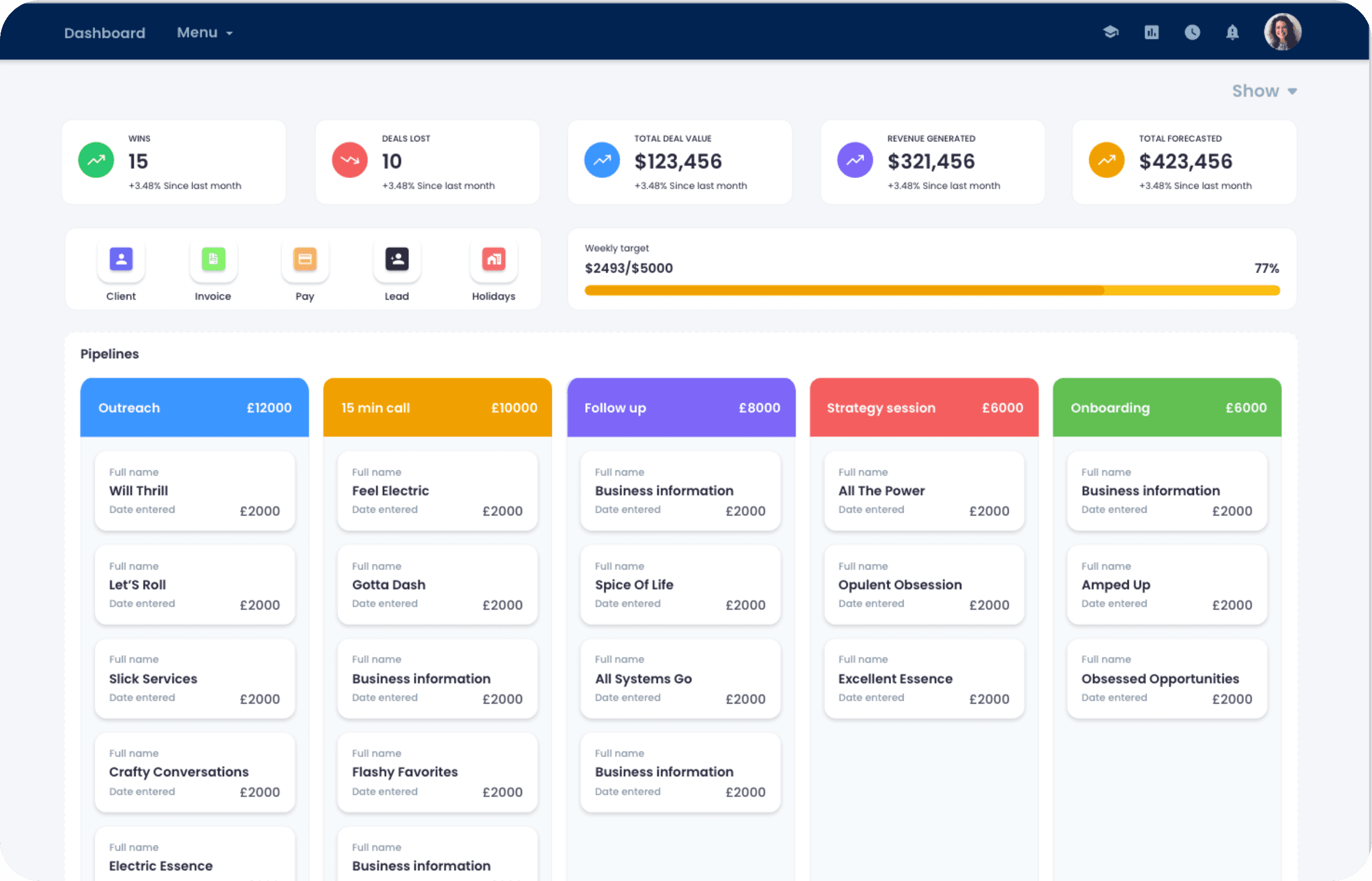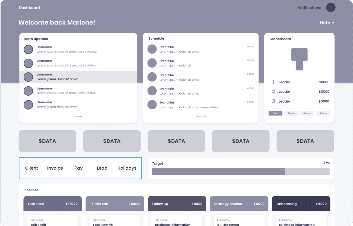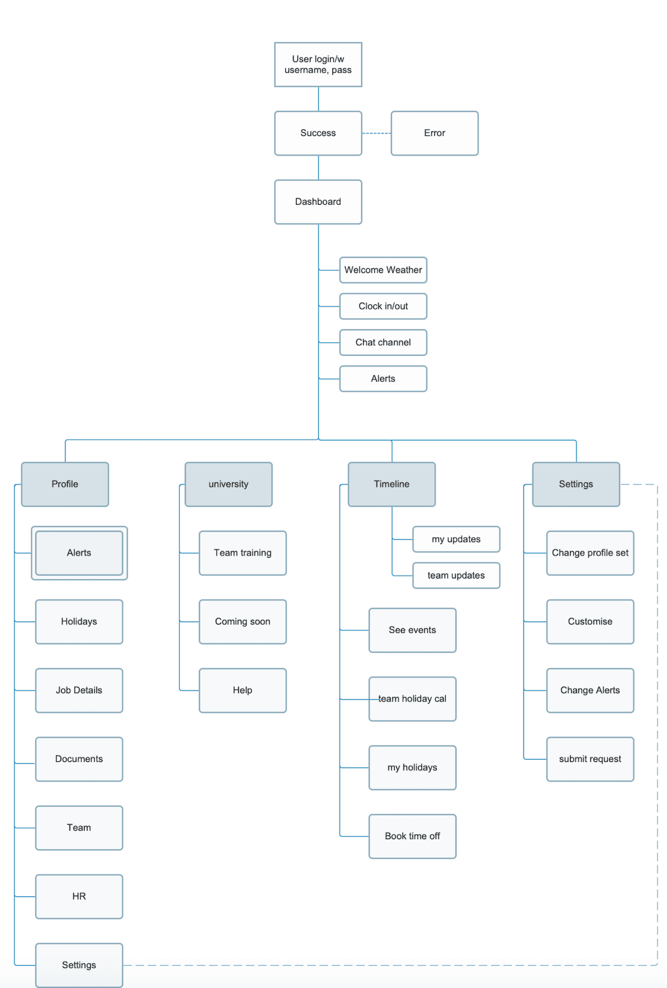 The site map was developed as part of our information architecture planning to establish a clear content hierarchy and optimise task flow. By mapping out primary and secondary navigation paths, we ensured intuitive access to core features like pipelines, client records, and task management. This structure reduced cognitive load, supported user mental models, and provided a scalable foundation for future feature expansion.