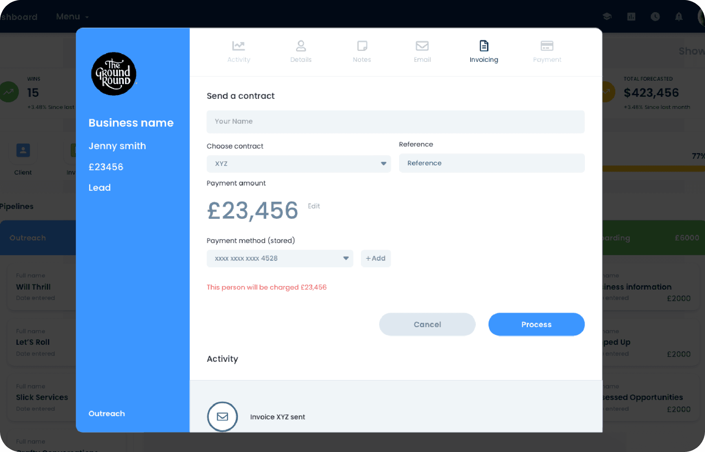 When about to secure a deal, click the card. A window will appear with all the necessary tools.